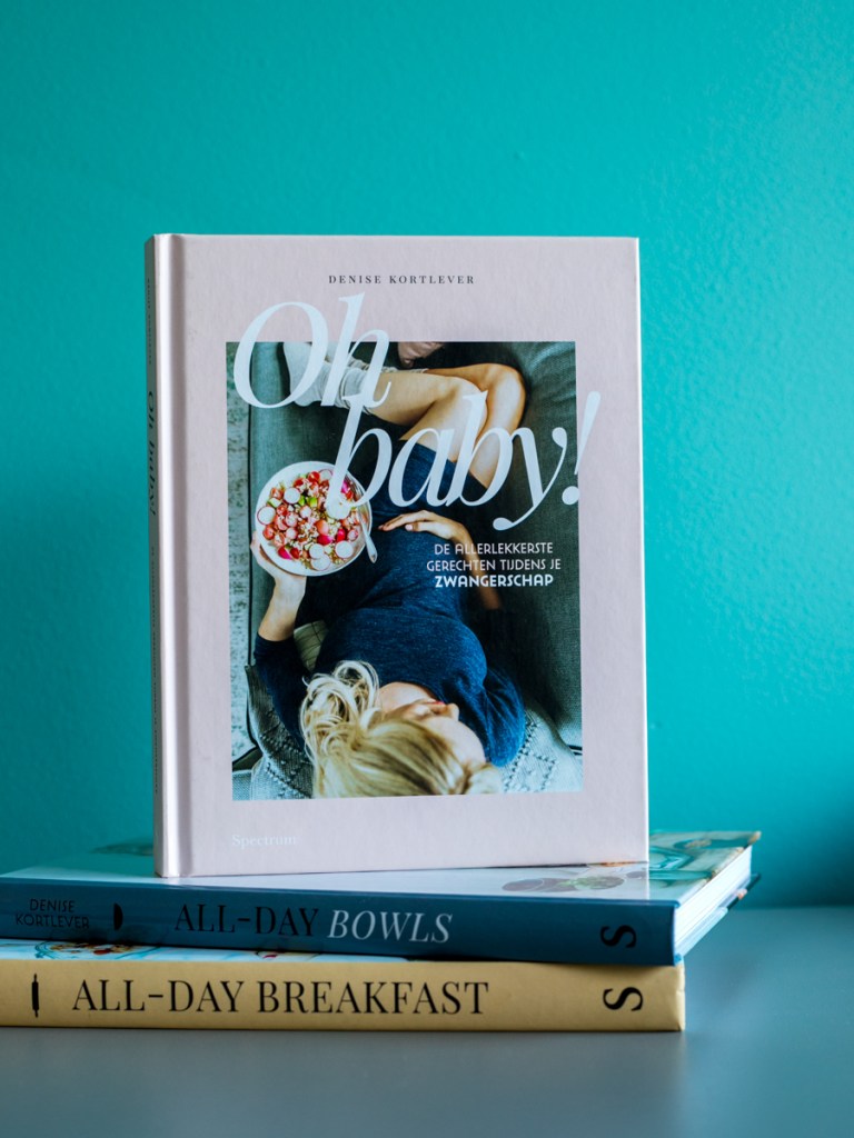 Gelukkig ben ik niet de enige die er zo over dacht. Culinair trendjournalist en foodfotograaf Denise Kortlever schreef namelijk tijdens haar zwangerschap van zoontje James (september 2017), haar derde kookboek. En zo verscheen ‘Oh baby! De allerlekkerste gerechten tijdens je zwangerschap’. Een boek, niet alleen gevuld met preggo-proof recepten, maar ook met handige tips én natuurlijk prachtige foto’s. Je begrijpt, daar wilde ik alles over weten.