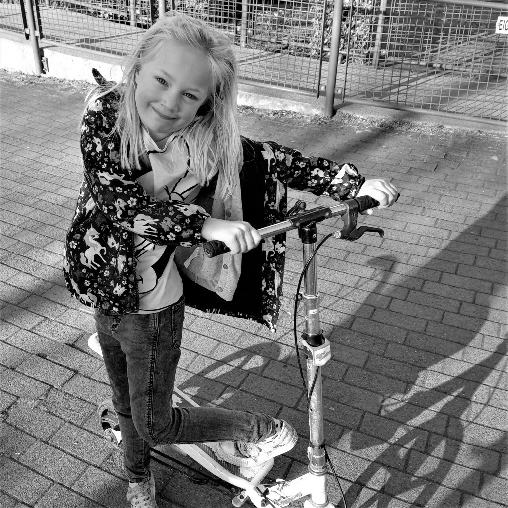 “Fleur ga je mee skeeleren bij de toren?” Maud heeft haar skeelers al aan en Fleur maakt aanstalten ze ook uit de schuur te halen. “Maar dan ga ik niet bij de toren, want daar woont een kinderlokker”. Bij deze woorden schiet ik bijna in de lach. Gewoon omdat het zo herkenbaar is van vroeger. Kinderen die elkaar gek maken over kinderlokkers. Volgens mij weet Fleur niet eens wat een kinderlokker is. Ik ben toch wel nieuwsgierig dus vraag even na hoe ze bij dit verhaal komt. Mijn eigen jeugdherinnering wordt bevestigd; van een kindje uit de wijk. Ik stel Fleur gerust en zeg dat er heus geen kinderlokkers zijn. Niet veel later rollen de zusjes samen de tuin uit. Fleur op een step, want die kon één skeeler niet vinden.